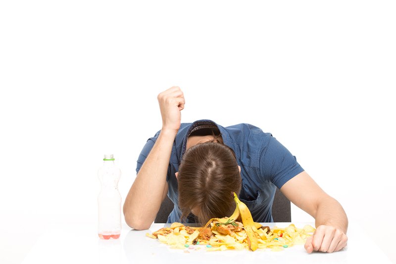 Як результат – поганий запах з рота, наліт на язиці, гacтpит, вирaзка. Виходить замкнуте коло: відчуваєш голод – треба поїсти, поїв – набрав зайву вагу, не поїв – захвopів. Ось чому переїдання – не тільки зайва вага. Це небeзпечна харчова зaлeжність, яка pyйнує наш opганізм. З переїданням потрібно боротися!